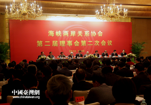 会议指出,2010年是开创两岸关系和平发展新局面承上启下的关键一年,两岸关系发展面临新的前景和机遇,同时也面临新的困难和挑战。海协会将继续深入贯彻胡锦涛总书记在纪念《告台湾同胞书》发表30周年座谈会上的重要讲话精神,本着先经后政、先易后难、循序渐进的步骤,稳步扎实地推进两岸协商进程,巩固“九二共识”的政治基础,以商签两岸经济合作框架协议和两岸知识产权保护为重点,进一步推动两岸经济关系正常化、机制化、制度化,最大限度地实现两岸经济发展优势互补、互利双赢,为两岸关系和平发展奠定更加坚实的基础。