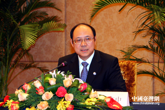 12月14日下午,海协会常务副会长郑立中与海基会副董事长兼秘书长高孔廉在上海举行两会领导人第六次会谈的预备性磋商,图为郑立中在磋商后的记者会上通报情况。(中国台湾网 钟宝华 摄)