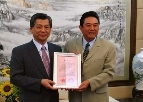 陈云林会长代表灾区人民向蔡宏图先生的善举表示感谢,并代表海协会颁发感谢信和赈灾纪念品及证书。陈云林表示,四川汶川地震发生以来,台湾民众和台资企业心系灾区,纷纷捐款捐物,向灾区人民伸出援手,充分体现了两岸同胞的骨肉真情。海协会将继续为台湾社会各界参与灾区重建提供协助。