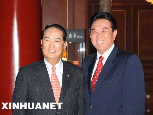 8月6日,海协会会长陈云林在北京钓鱼台国宾馆会见亲民党主席宋楚瑜。 新华社记者 陈树根摄