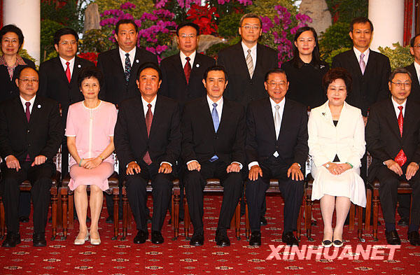 11月6日,马英九在台北宾馆会见海协会会长陈云林一行。这是双方合影。新华社记者 邢广利 摄