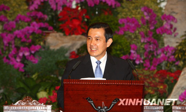 11月6日,马英九在台北宾馆会见海协会会长陈云林一行。这是马英九致辞。新华社记者 邢广利 摄