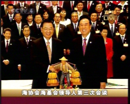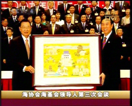 陈云林向江丙坤赠送云锦 (CCTV截图)