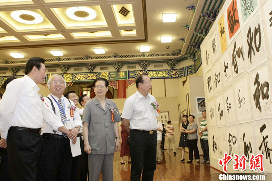 中新社北京7月5日电 (记者 刘舒凌)海峡两岸关系协会会长、全国政协港澳台侨委员会主任陈云林5日在此间出席“海峡两岸‘和在中国’书画作品(北京)展”开幕式并会见参展的两岸艺术家。
