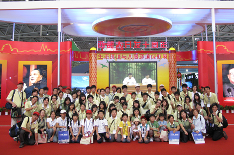 游文聪校长一行在参观西部大开发十周年生态环境与人居环境成就展后的合影。