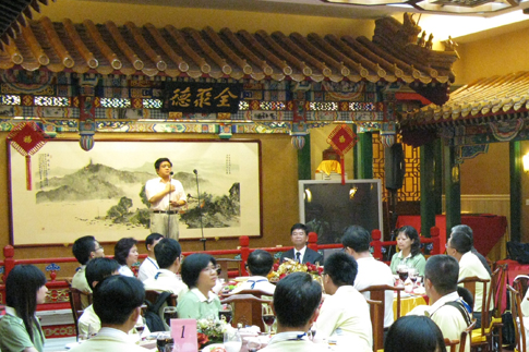 海协会副秘书长马晓光在全聚德设宴款待游文聪校长一行,并在现场致欢迎辞。