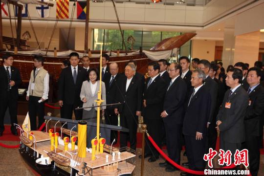 在张荣发基金会一楼,陈德铭一行还参观了珍贵的清代船只模型。(完)