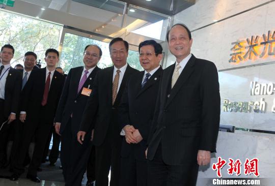 图为在郭台铭(右3)等人陪同下,陈德铭(右2)准备入内参观。 董会峰 摄