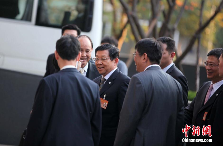 12月1日下午,海协会会长陈德铭率团参访中国银行台北分行。右为随团参访的中国银行行长李礼辉。中新社发 董会峰 摄