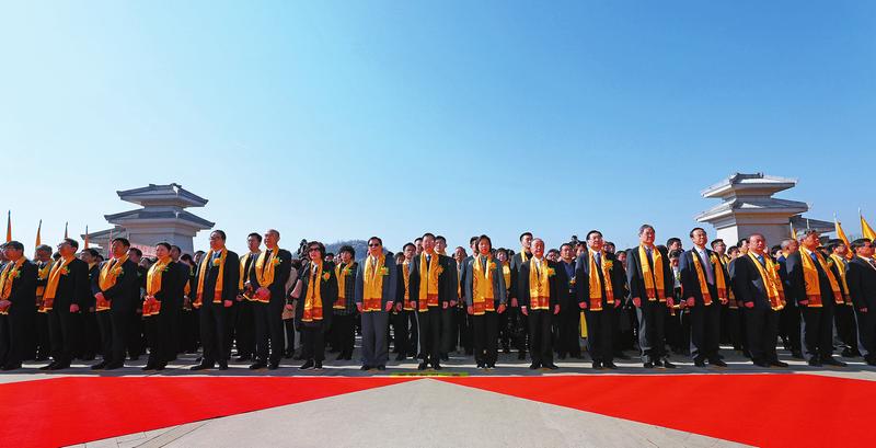 4月5日上午,己亥年清明公祭轩辕黄帝典礼在黄陵县桥山隆重举行。郝明金、苏辉、刘兆玄、郁慕明、胡和平、刘国中、张志军、许又声、万立骏、贺荣等参加公祭典礼。 本报记者 宋红梅摄